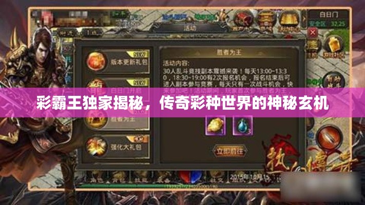 在浩瀚的彩种世界中,有一个名字始终引人注目——彩霸王,而今天,我们要深入探讨的便是彩霸王背后的独家玄机,揭示其背后的神秘面纱,带您走进一个充满传奇色彩的彩种世界。