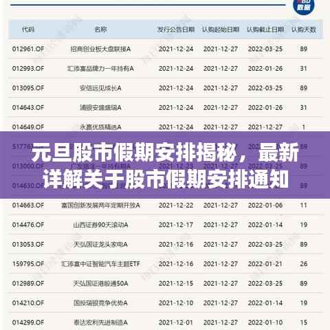 转载请注明来自衡水悦翔科技有限公司,本文标题:《元旦股市假期安排揭秘,最新详解关于股市假期安排通知》