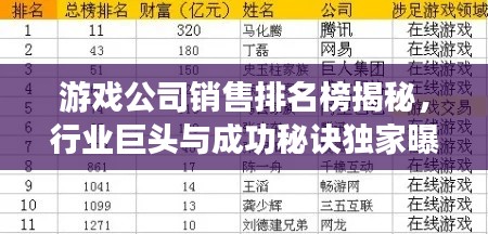 游戏公司销售排名榜揭秘,行业巨头与成功秘诀独家曝光