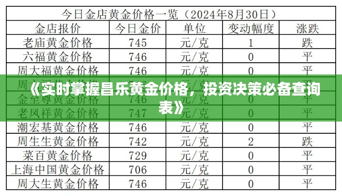 标题:《实时掌握昌乐黄金价格,投资决策必备查询表》