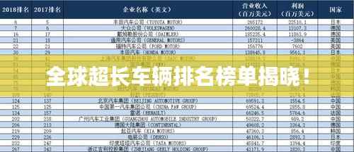 汽车,作为现代交通工具的重要组成部分,其种类和形态各异,满足不同人群的需求,我们将聚焦于一个特别的领域——全世界最长的车排名,这些超长车辆以其独特的地位和卓越的性能,在全球范围内备受瞩目,让我们一起了解这些世界上最长的车辆。