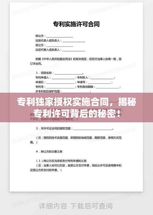 在当今知识产权保护日益受到重视的背景下,专利实施独家许可合同的地位愈发重要,本文旨在阐述专利实施独家许可合同的基本概念、主要条款及其实际应用。