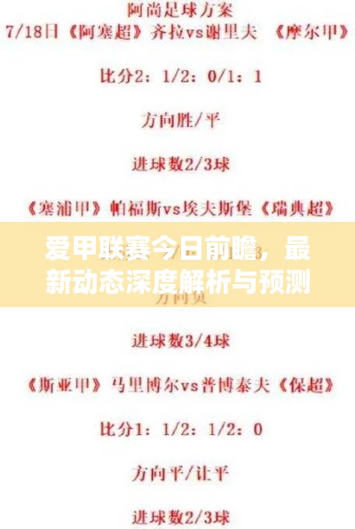 随着足球热情的持续高涨,爱甲联赛(XXXX年赛季)已经成为球迷们关注的焦点,本文将为大家带来最新的爱甲联赛预测和深度分析,结合球队表现、球员状态以及赛事动态,为您的观赛体验增添更多乐趣。