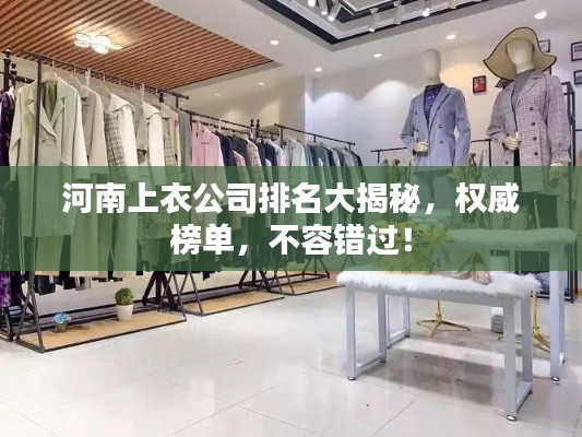 河南,这片古老的大地,在现代工业发展的浪潮中,各行各业的企业如雨后春笋般崭露头角,上衣制造行业更是蓬勃发展,众多公司凭借优质的产品、创新的设计和良好的服务赢得了市场的认可,本文将对河南上衣公司进行排名,以飨广大消费者及业界人士。