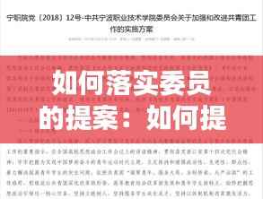 政协委员的提案是民主监督和参政议政的重要途径,是推动国家治理体系和治理能力现代化的重要手段。提案的落实情况直接关系到国家政策的实施效果和社会问题的解决程度。因此,如何有效落实委员的提案,成为了一个亟待解决的问题。