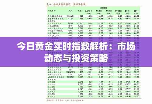 标题:今日黄金实时指数解析:市场动态与投资策略