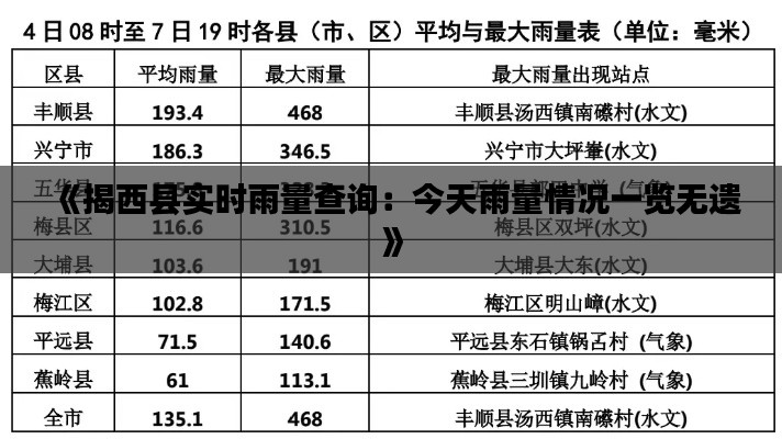 标题:《揭西县实时雨量查询:今天雨量情况一览无遗》