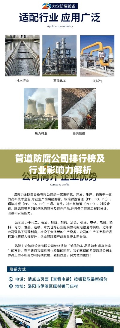 随着城市化进程的加快,管道防腐工程的重要性日益凸显,对于保障城市基础设施的正常运行和居民生活安全,管道防腐工程具有举足轻重的地位,各大管道防腐公司的实力和排名成为了行业内关注的焦点,以下是当前管道防腐公司的排名及其行业影响力简述。
