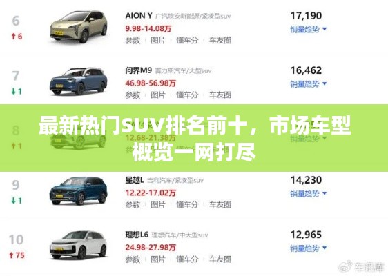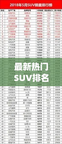 随着汽车市场的繁荣和消费者需求的多样化,SUV(运动型多用途车)因其卓越的性能和实用性成为热门选择,本文将为您介绍最新的SUV排名前十名,带您了解当前市场上最受欢迎的SUV车型。