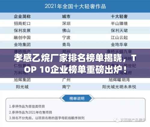 孝感乙烷厂家排名榜单揭晓,TOP 10企业榜单重磅出炉!