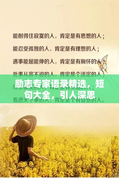 在人生的旅途中,我们时常需要一些励志的话语来激励自己,专家们的励志语录往往能给我们带来深刻的启示,以下是一些精选的专家励志语录短句,希望能激励我们在人生的道路上勇往直前。