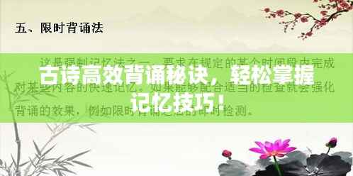 古诗是中国传统文化的重要组成部分,对于学习和传承传统文化具有重要意义,对于很多人来说,背诵古诗是一项困难的任务,探索和实践高效的古诗背诵方法显得尤为重要,本文将介绍几种有效的古诗背诵技巧,帮助大家更好地掌握这一技能。