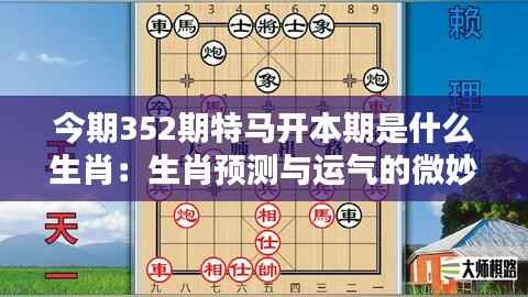 在这个忙碌而又不断变化的世界中,澳门作为东方之珠,一直保留着其独特的文化和传统。其中,对生肖的信仰和预测就是澳门文化中不可或缺的一部分。生肖作为一种古老的信仰体系,它与运气和决策的联系千丝万缕,给人们的生活带来了微妙的影响。以下将详细解读今期352期特马开本期是什么生肖,以及生肖预测与运气的微妙联系及其对决策的潜在指导价值。