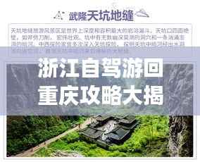 转载请注明来自衡水悦翔科技有限公司,本文标题:《浙江自驾游回重庆攻略大揭秘,最新指南助你畅游千里》