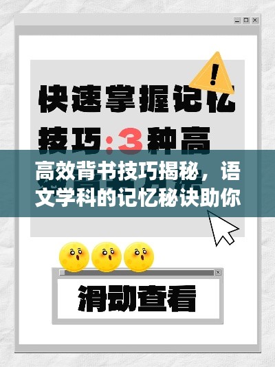 在学习的过程中,背书是一个必不可少的环节,对于语文学科而言,背书不仅能够提高我们的文学素养,还能帮助我们更好地掌握知识点,提高考试成绩,如何高效背书,让这一过程变得轻松、愉快并有效,是许多学生关注的问题,本文将为大家介绍一些高效的语文背书技巧。