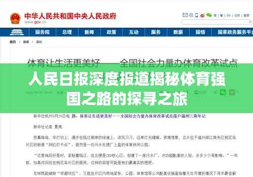 随着时代的发展,体育事业在国家发展中的地位日益重要,人民日报作为权威的新闻媒体,一直致力于为广大读者带来深度的体育报道,本文将围绕人民日报体育深度报道,探寻我国体育事业发展的足迹,见证我们迈向体育强国的历程。