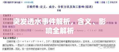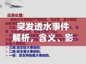 在日常生活和工作中,我们可能会遇到各种突发事件,突发透水”是近年来备受关注的一种。“突发透水什么意思”呢?本文将详细解析突发透水的含义,探讨其成因,并阐述其对人们生活和环境的影响。