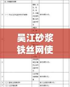 在吴江地区,砂浆铁丝网作为一种常见的建筑材料,广泛应用于各类建筑工程中,为确保砂浆铁丝网在工程建设中的合理使用,保障工程质量,本文将对吴江砂浆铁丝网的用途规范进行详细介绍。