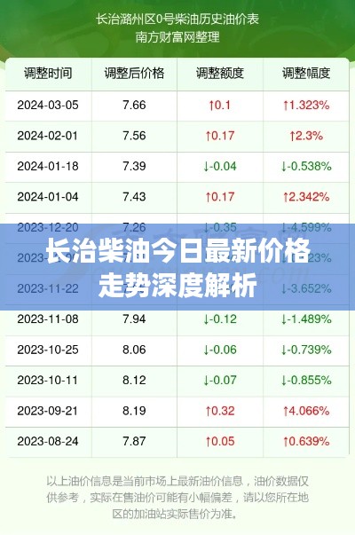 随着全球能源市场的动态变化,柴油价格成为各界关注的焦点,本文将重点关注今日长治地区柴油的最新价格,并对其背后的因素进行分析。