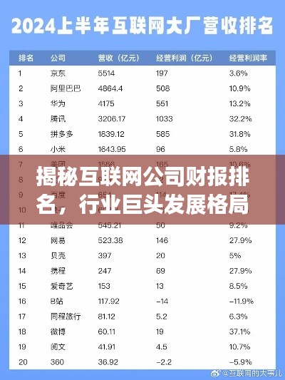随着互联网技术的飞速发展,各大公司的业绩表现一直是行业内外关注的焦点,本文将围绕互联网各大公司的财报排名,探讨这些行业巨头的发展格局。