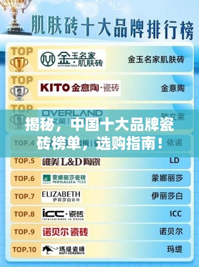 这些排名前十的中国品牌瓷砖在品质、创新、服务等方面均表现出色,消费者在选择瓷砖时,可以根据自身的需求和预算选择合适的品牌和产品,消费者在购买瓷砖时,还应该注意产品的质量、品牌的服务和价格等方面的综合考虑,希望本文能够为广大消费者选择优质的瓷砖提供帮助,除了选择知名品牌外,消费者在购买瓷砖时还需要注意以下几点: