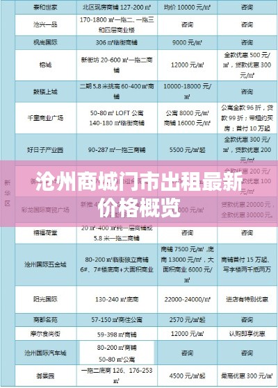 随着沧州市经济的持续繁荣和商贸活动的日益活跃,门市出租商城的需求逐渐上升,最新的价格动态也备受关注,本文将为您详细介绍沧州门市出租商城的最新价格情况,带您了解当前市场动态及未来趋势。