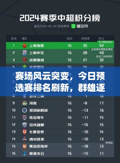 随着比赛的日益临近,今日预选赛的排名最新消息成为了众人瞩目的焦点,在这片充满竞技激情的赛场,各路豪杰纷纷展现自己的实力,争夺每一个可能晋级的名额,本文将为您带来最新的预选赛排名消息,一同见证这一赛场上的风云变幻。