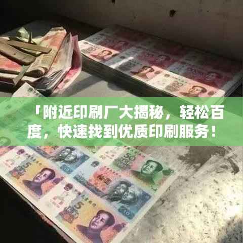 通过使用百度搜索,我们可以轻松找到附近的印刷厂,并了解各家的详细信息,这种方式的便捷性、实时性、多样性和准确性使得越来越多的人开始使用搜索引擎来寻找印刷服务,如果您需要印刷服务,不妨尝试一下百度搜索,或许能找到最适合您的印刷厂。