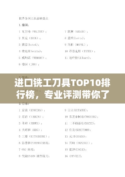在制造业和机械加工领域,铣工刀具扮演着至关重要的角色,随着全球市场的不断发展,各种品牌的铣工刀具层出不穷,其中进口铣工刀具以其卓越的性能和质量备受用户青睐,本文将为您介绍进口铣工刀具排名前十名的品牌,帮助您更好地了解市场并选择适合自己的产品。