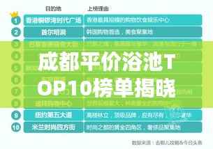 成都的平价浴池市场相当繁荣,各种浴池琳琅满目,本文介绍的成都平价浴池排名前十名都是市场上的佼佼者,它们不仅提供优质的服务,而且价格亲民,在选择浴池时,市民应根据自己的需求、预算、时间和喜好进行选择,希望本文能为广大市民选择浴池提供参考。