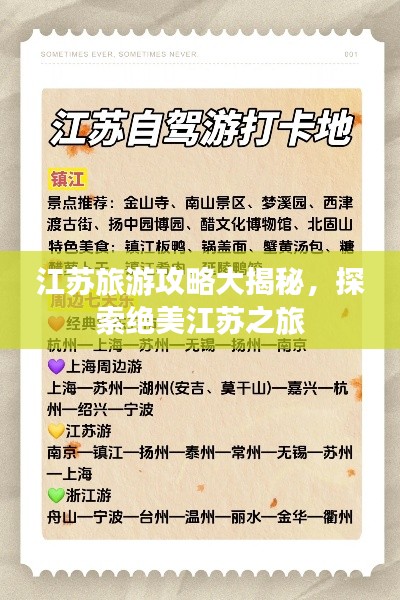 江苏是一个充满魅力的省份,拥有丰富的历史文化、美丽的自然风光和美食佳肴,通过本文提供的攻略,希望能为您的江苏之行提供一些帮助,在游玩过程中,注意合理安排行程,尊重当地文化,品尝当地美食,注意安全,祝您旅途愉快!