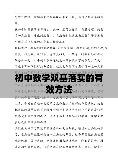 在初中数学教育中,双基教育扮演着至关重要的角色,所谓双基,指的是基础知识和基本技能,随着教育改革的深入,如何切实落实初中数学双基教育成为广大教育工作者关注的焦点,本文将探讨初中数学双基落实方法,旨在提高数学教学质量,帮助学生打下坚实的数学基础。