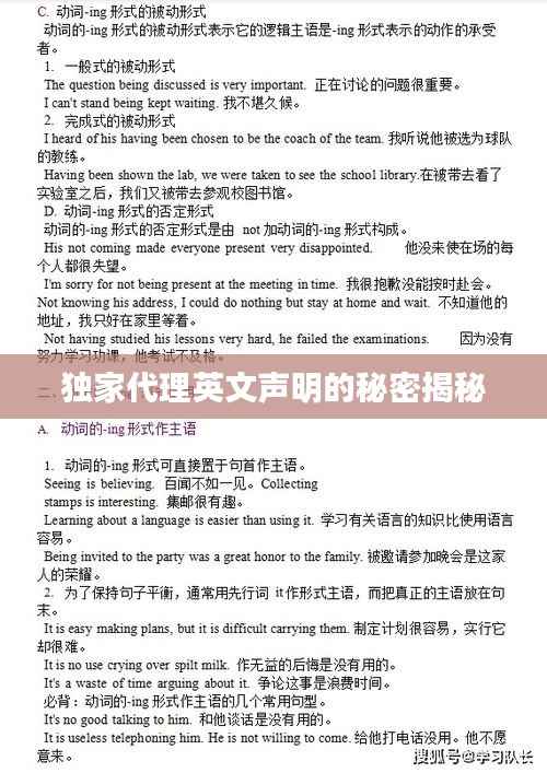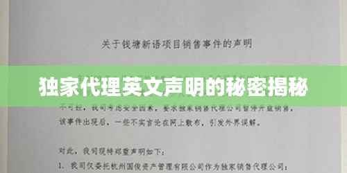 随着全球化的不断发展,商业交流与合作日益频繁,在众多商业活动中,独家代理成为了一种常见的合作模式,本文将围绕“独家代理英文声明”这一主题展开讨论,帮助读者更好地了解独家代理的相关内容。