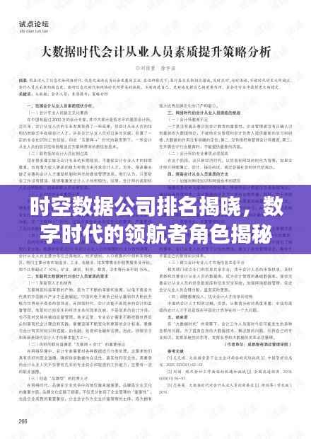 随着科技的飞速发展,时空数据行业已经成为当今时代的一大热门,在这个领域,众多公司凭借创新的技术、卓越的产品和服务,赢得了市场的认可,本文将为你揭示时空数据公司的排名,带你了解这些在数字时代引领潮流的领先者。