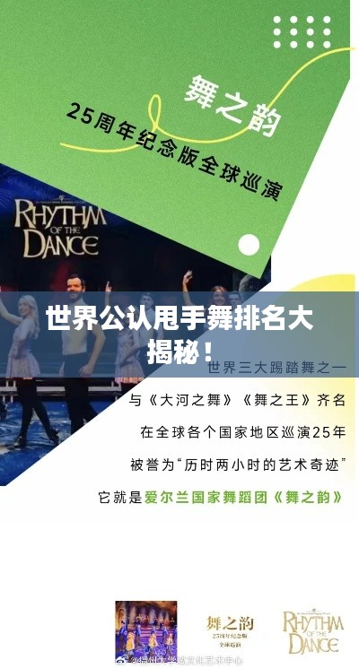 舞蹈是一种世界性的艺术形式,通过各种动作和姿态展现出独特的韵律美,在众多舞蹈中,甩手舞因其独特的风格和活力四溢的表现力而受到广泛欢迎,本文将探讨世界公认的甩手舞排名,介绍一些在甩手舞领域具有卓越成就和广泛影响力的舞蹈团体和个人。