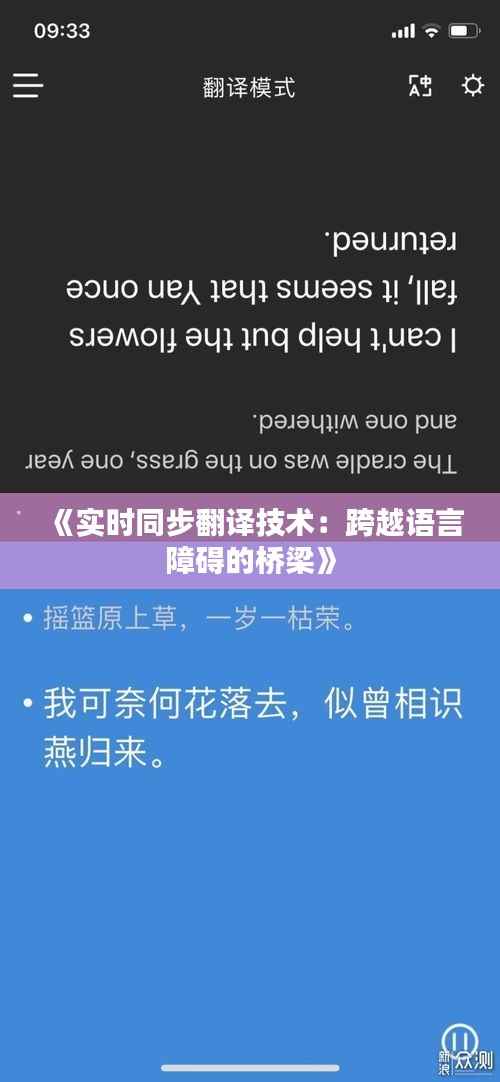 实时同步翻译技术是指通过计算机技术,将一种语言实时翻译成另一种语言,并同步显示在屏幕上。其原理主要包括以下几个方面: