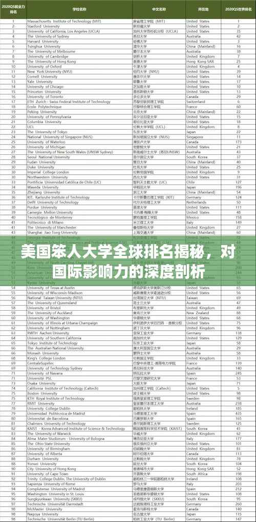 美国笨人大学全球排名揭秘,对国际影响力的深度剖析