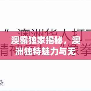 随着互联网的普及和全球化的发展,越来越多的人开始关注世界各地的文化和风情,而澳大利亚,这片充满活力和魅力的土地,已然成为无数人心目中的理想目的地,我们将通过“澳霸网站独家心水”这一关键词,一起探索澳洲的独特魅力和无限可能。