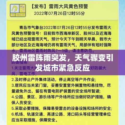 胶州市迎来了一场突如其来的雷阵雨天气,这场意料之外的降雨给当地市民带来了不小的惊喜与挑战,本文将围绕这场雷阵雨展开,介绍其特点、影响以及应对方式。