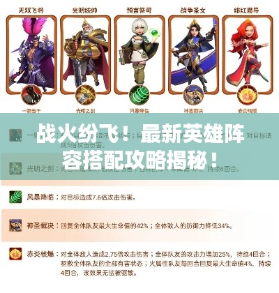 随着游戏版本的更新,战火中的英雄角色也在不断变化,为了更好地应对敌人,提高胜率,掌握最新的阵容搭配至关重要,本攻略将为大家介绍一套经过实战验证的阵容搭配方法,助您在游戏中取得胜利。