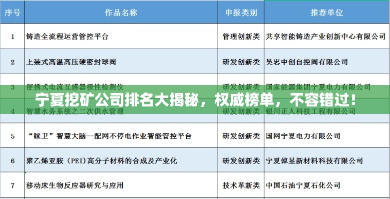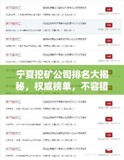 随着全球经济的不断发展,矿业行业也在持续壮大,宁夏地区作为我国重要的矿产资源富集区之一,吸引了众多挖矿公司的目光,本文将为您介绍宁夏地区的挖矿公司排名,带您了解这一行业的领军者。