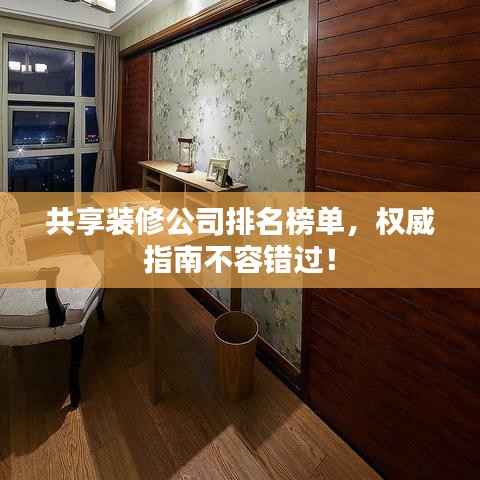 随着共享经济的兴起,装修行业也逐渐走向共享模式,越来越多的装修公司开始转型,提供共享装修服务,以满足广大消费者的需求,本文将介绍共享装修公司排名,帮助消费者了解行业内的主要服务提供商,以便做出明智的选择。