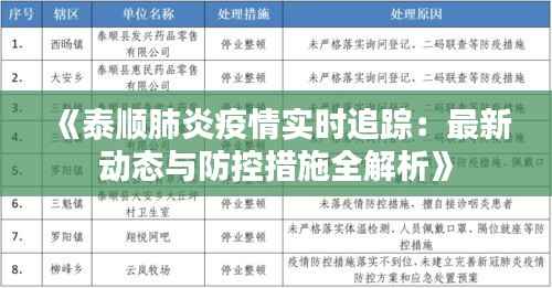 标题:《泰顺肺炎疫情实时追踪:最新动态与防控措施全解析》