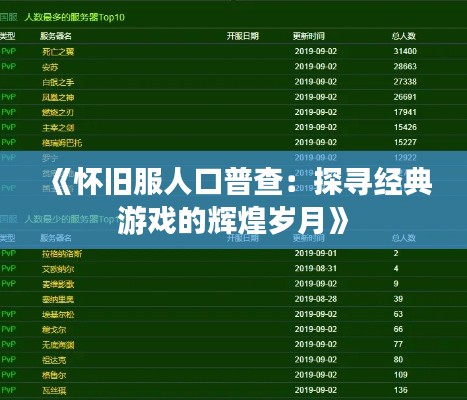 标题:《怀旧服人口普查:探寻经典游戏的辉煌岁月》
