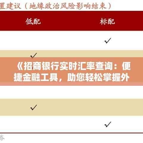 标题:《招商银行实时汇率查询:便捷金融工具,助您轻松掌握外汇行情》
