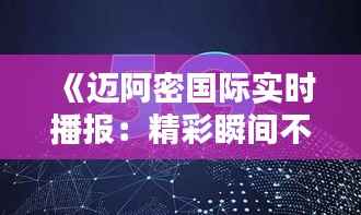 标题:《迈阿密国际实时播报:精彩瞬间不容错过!》