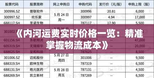 标题:《内河运费实时价格一览:精准掌握物流成本》