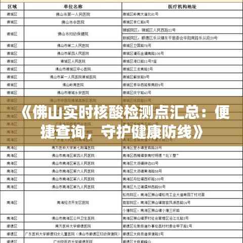 标题:《佛山实时核酸检测点汇总:便捷查询,守护健康防线》