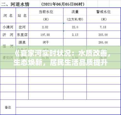 标题:《夏家河实时状况:水质改善,生态焕新,居民生活品质提升》