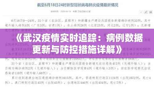 标题:《武汉疫情实时追踪:病例数据更新与防控措施详解》